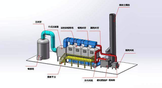 1.噴淋塔+干式過濾器預處理+活性炭吸脫附+催化燃燒;