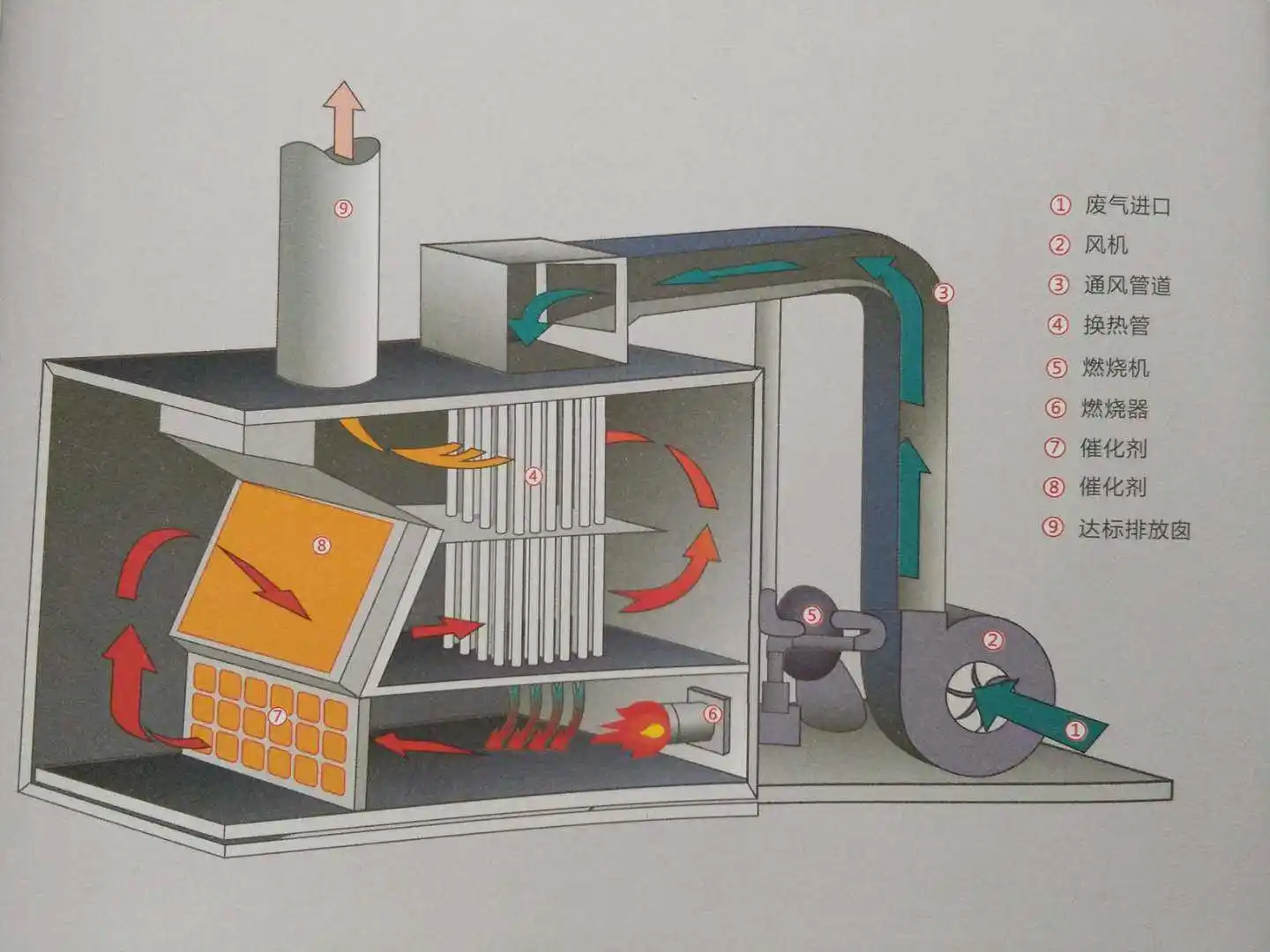 催化凈化是典型的氣固催化反應,其實質是活性氧的氧化。在催化凈化過程中,催化劑的作用是降低活化能。同時,催化劑表面具有吸附作用,使反應物分子在催化劑表面富集,提高了反應速率,加快了反應速度。在催化劑的作用下,廢氣可以在較低的著火溫度下進行無焰燃燒,并被氧化成CO2和H2O。同時,大量的熱能被釋放出來,從而達到去除廢氣中污染物的方法。通過活性炭吸附,將風量大、濃度低的廢氣濃縮成風量小、濃度高的廢氣,在進入RCO裝置進行處理,可節約運行成本。