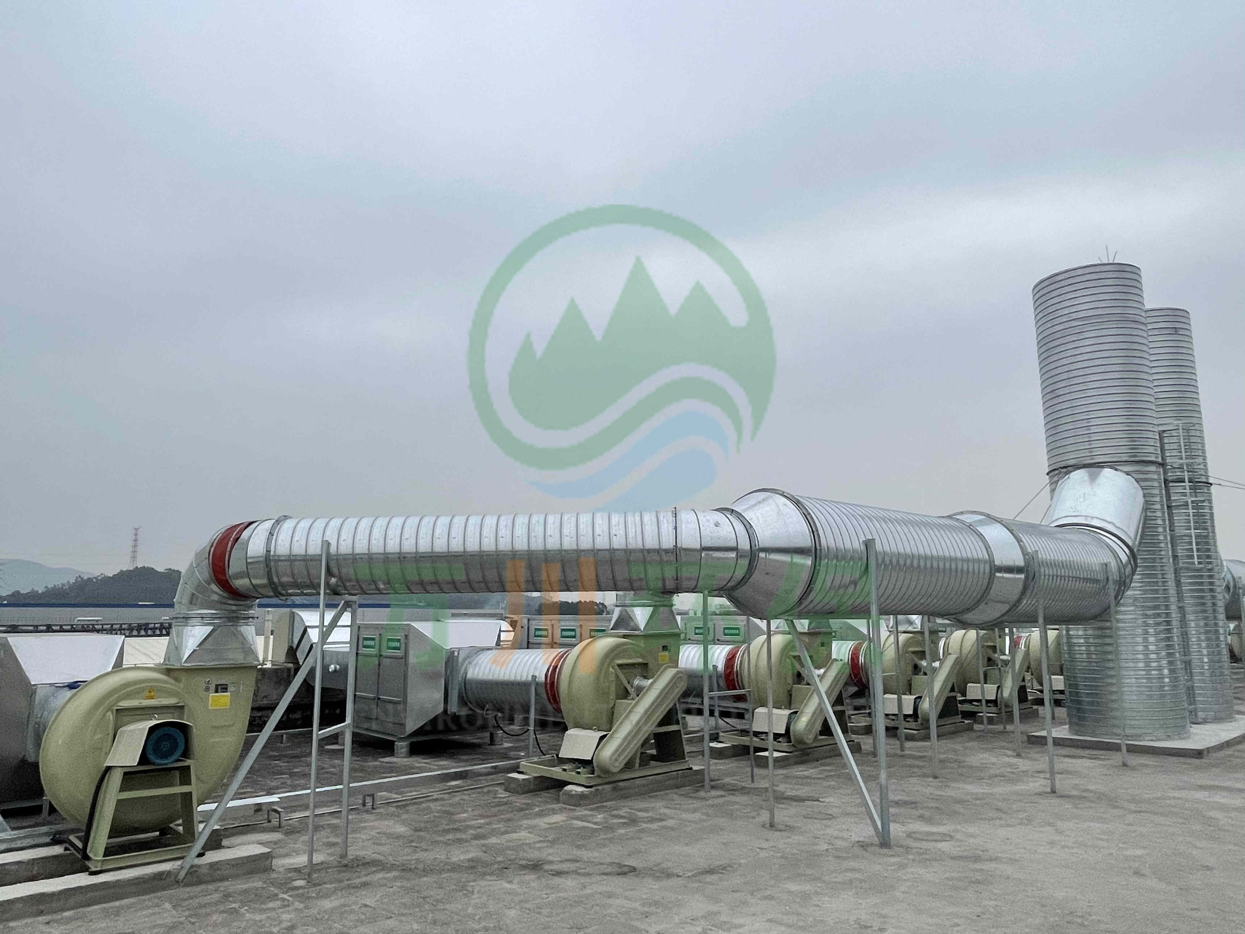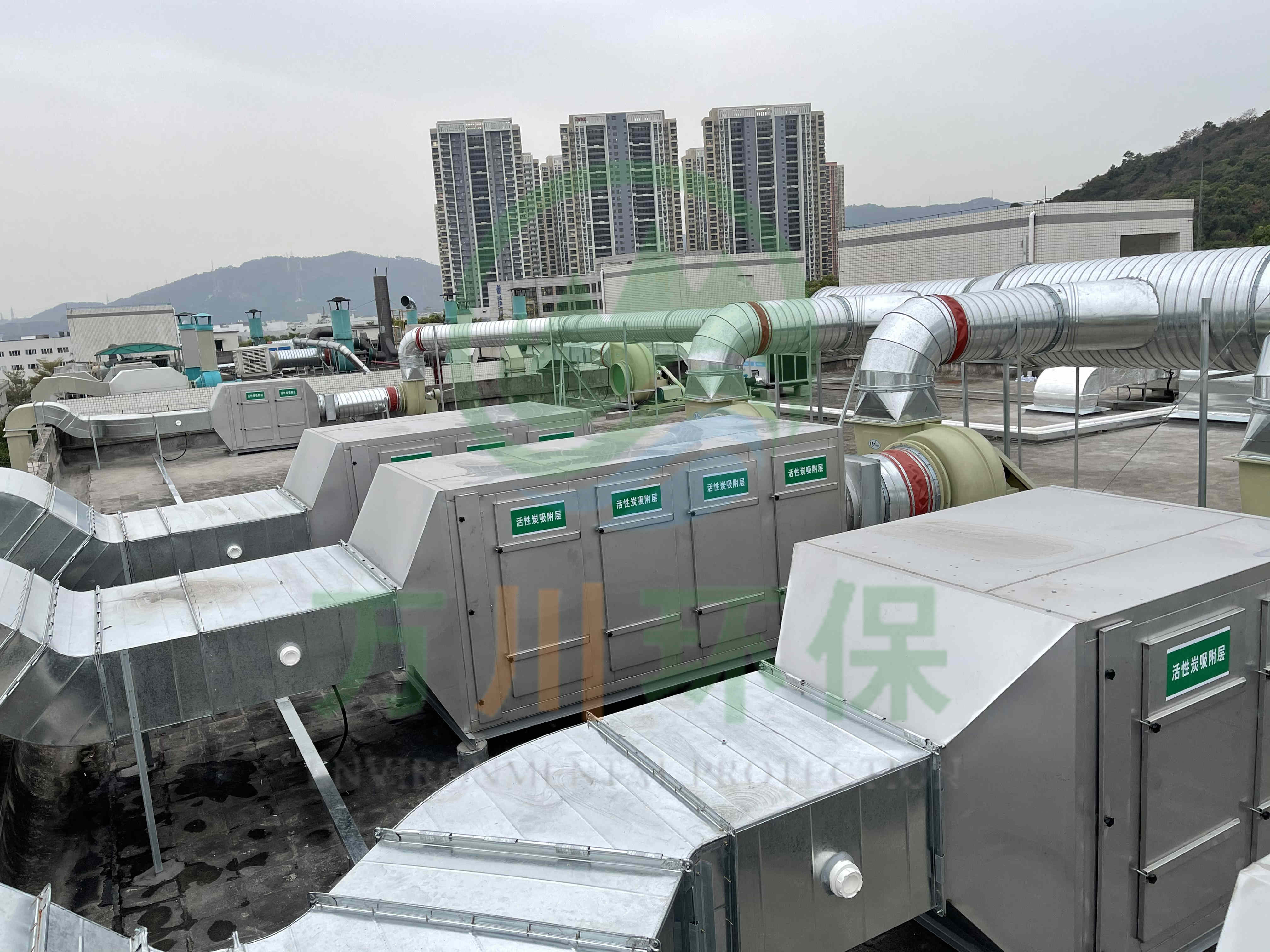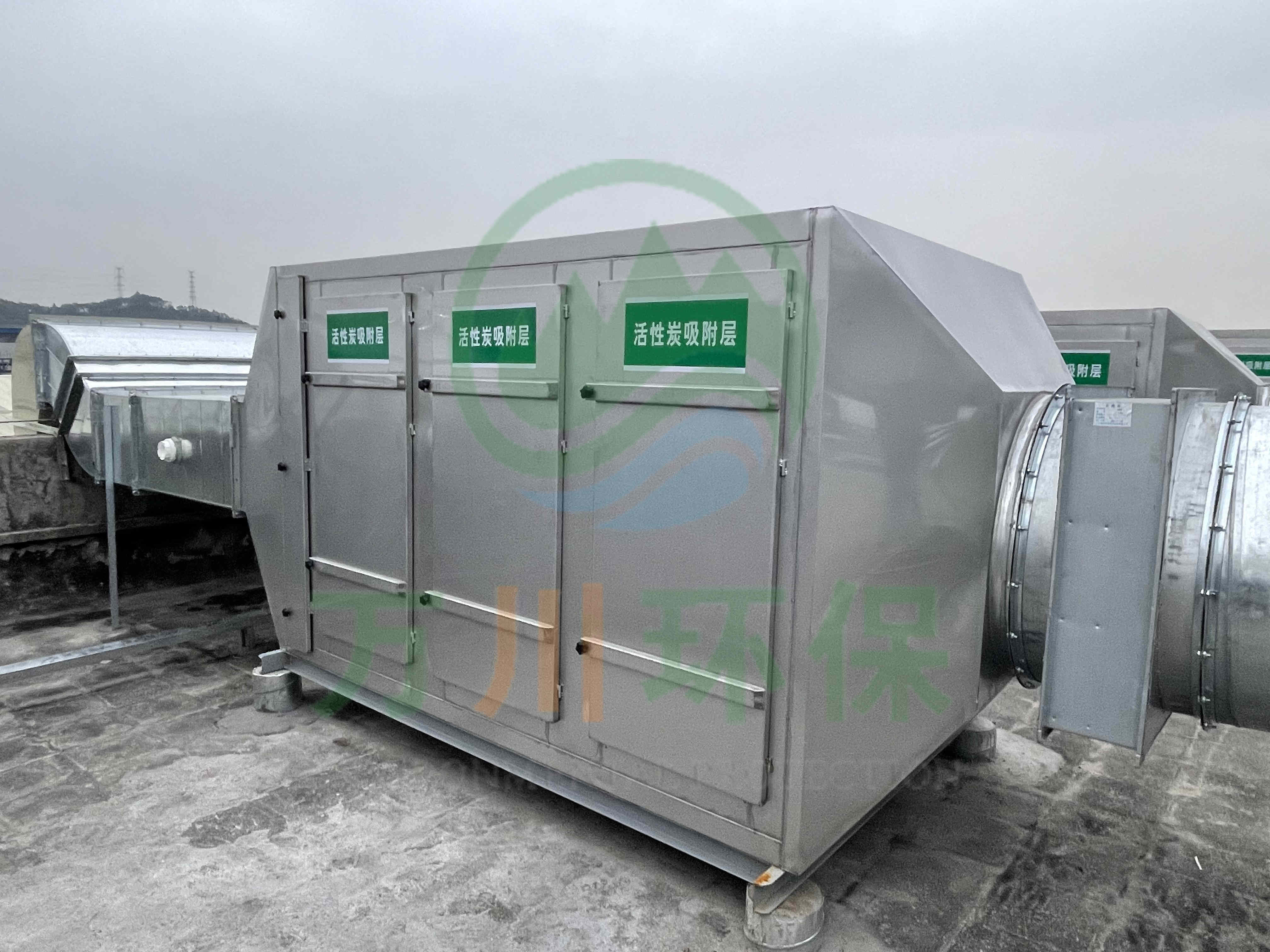 在廢氣處理上選用了活性炭吸附法,我們以活性炭作為吸附介質,廢氣通過活性炭吸附裝置,活性碳吸附有機揮發(fā)物,使其與氣體混合物分離,從而使氣體得到凈化。