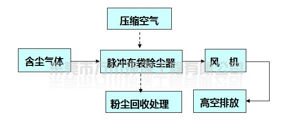 根據榮科公司的實際情況和以往的案例經驗,我們技術人員依據國家及地方關于環保的法律和法規、工業企業設計衛生標準(TJ36-79)、《廣東省大氣污染物排放標準》(DB44/27-2001)、《三廢治理工程技術手冊》廢氣卷,經過對廢氣污染物和現有的處理技術的綜合分析,認為該廠所產生的粉塵適合采用干式除塵法,所以我們為榮科公司設計了一套風量為35000m3/h脈沖布袋除塵器。