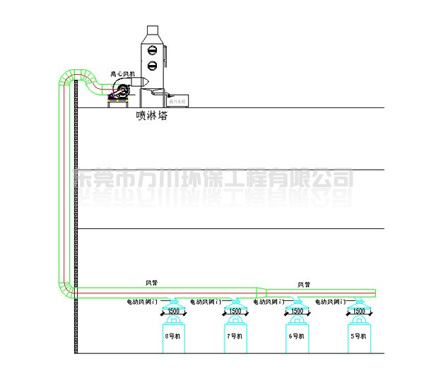 根據廠方提供的資料及現場勘察的情況,我司可以確定該廠的廢氣為“氨氣”。根據該廢氣的性質,萬川環保決定為該廠選定設備為--噴淋塔。(工藝簡圖如下)